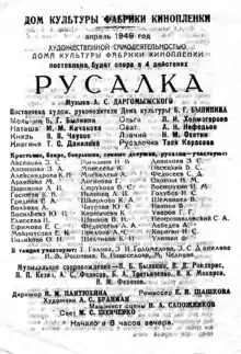 В 1949 году поставлена опера А. С. Даргомыжского «Русалка». Она получила восторженные отзывы ярославских искусствоведов.[1] Переславский оперный коллектив гастролировал с нею в ярославском театре имени Ф. Г. Волкова и в концертном зале Ярославской филармонии.[2]