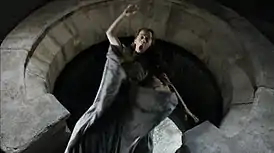 ![]() Петир сбрасывает Лизу через Лунную дверь, сказав ей, что он любил только её сестру. | |||||