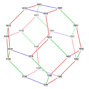 - Неориентированный граф, образованный вершинами и рёбрами перестановочного многогранника, изоморфен графу Кэли симметрической группы.[1]