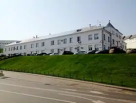 Комплекс двух- и трёхэтажных корпусов, прилегающий к изгибу кремлёвской стены, объединён в единое здание, окружающее вытянутый с севера на юг внутренний двор. Въезд во двор сооружён с северной стороны, оформлен аркой с массивными двойными воротами. Фасад оштукатурен и побелен, он практически лишён декора, что соответствует назначению здания[1][2].