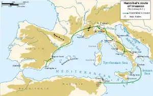 Переход Ганнибала через Альпы (2-я пол. октября 218 года до н. э.) — одно из важнейших событий Второй Пунической войны; считается одним из самых примечательных достижений в военном деле времен античности[1][2]. Переход через Альпы позволил Ганнибалу неожиданно для римлян привести карфагенскую армию в Италию, развязав, таким образом, военные действия на основной территории Римской республики[3].