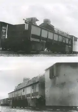 | Орлик (бронепоезд) | л | В | ДвА, белочехи | ![]() Слева: платформа импровизированного бронепоезда чехословацкого корпуса «Орлик», вооружённая 12-ю пулемётами. Пензенская группировка чехословаков. Уфа, июнь 1918. Справа: «Орлик», 1920. | ||