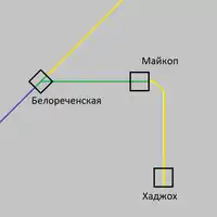 - Белореченская — направления на Туапсе-Пассажирская (DC) — Армавир-Туапсинский (AC) — Майкоп (AC/DC)*