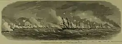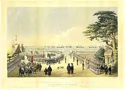 В июне 1853 года (6 год Каэй) небольшая флотилия США из 4 военных кораблей с 100 пушками на борту под командованием командора Мэттью Перри прибыла в Японию, в бухту Урагава (современная префектура Канагава), рядом с заливом Эдо. Перри передал японской стороне ультимативное письмо президента США с требованием открыть японские порты. Сообщив сёгунату, что прибудет в следующем году за ответом, командор вернулся на родину.