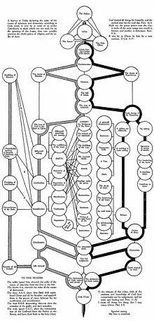 Относительно предопределения или «божьей воли в том, что касается человека», Перкинс, помимо собственной, выделяет три точки зрения. Первой он опровергает пелагиан, видящих причину предопределения в самом человеке, свободно принимающем или отвергающем благодать. Во-вторых, он отвергает лютеранский подход, в котором хотя и принимается учение о безусловном избрании к спасению, репробация ставится в зависимость от предвидимого Богом отказа человека от благодати. К третьей группе своих оппонентов Перкинс причисляет полупелагиан, приписывающих предопределение частью милости божьей, часть предвидимым заслугам. Соответственно, четвёртая возможность, которой придерживается Перкинс, составляющая реформатскую догму двойного предопределения, заключается в приписывании причину спасения или проклятия исключительно благоволению Бога. Согласно диаграмме Перкинса, избрание и репробация находятся в полной симметрии. Избрание понимается как единоличная свободная воля Бога определить некоторого человека к спасению через свою благодать. Это решение неизменно, и единожды избранный к спасению не может отпасть. Соответственно, репробацией является противоположное решение посредством справедливости. С целью более точного объяснения своей мысли, Перкинс выделяет в репробации два «действия» (acts). Первым Бог оставляет человека, являя ему свою справедливость, не по причине греховности отвергаемого, а исключительно из своей воли. Затем Бог определяет человека к наказанию и уничтожению за его грехи. Настаивая на божественном суверенитете над всеми созданиями, Перкинс не видит для осуждённого к проклятию человека праведно роптать[13]. Полемизируя с теми, кто утверждает, что в его схеме Бог проявляет жестокость к своим созданиям, обрекая их на адские муки, Перкинс отвечал, что правильно говорить не о том, что своей волей Бог создал одних для проклятия, но для явления своей справедливости и славы в отношении тех, кто подлежит проклятию. Также Перкинс отрицал, что его учение делает Бога творцом греха, создавая тех, кому предназначено согрешить. Во-первых, причиной греха является зло содержащееся в сомом человеке а, во-вторых, результатом действий Бога является манифестация его свойств, то есть славы и справедливости и, наконец, следует различать грех и попустительство совершить таковой[14].