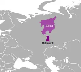 ![]() Географическое распространение коми и удмуртского языка | |