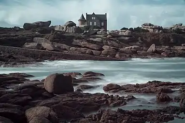 ![]() Берег розового гранита и маяк в Перрос-Гиреке | |||