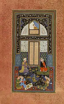 Тем временем в тимуридском Герате начался новый расцвет живописи, который связан с восшествием на трон в 1470 году Хусейна Байкара. Он удерживал власть в течение 36 лет. Время его правления нельзя назвать безмятежным — на западе постоянно беспокоили туркмены, тимуридские принцы-соперники устраивали мятежи, а на востоке набирала силу новая угроза — узбеки, однако Хусейн был достаточно мудр, чтобы справляться со всеми опасностями. При своём дворе в Герате он собрал блестящих поэтов, художников и мудрецов. В качестве визиря у него служил поэт Навои, образованнейший человек своей эпохи. При дворе также работали поэт Джами и целая плеяда прекрасных художников, среди которых в первую очередь следует упомянуть Бехзада. На царских приёмах был разработан сложный церемониал: там не только сидели в соответствии с чином, но и были обязаны соблюдать строгие правила этикета при обсуждении тонкостей поэзии, музыки или изобразительного искусства. Композиционная упорядоченность гератских миниатюр времён Хусейна Байкара в какой-то мере отражает дух этих придворных установлений.