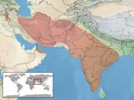 Вид распространён от Пакистана до Турции, от Азербайджана до Израиля и Иордании. Встречается в Саудовской Аравии, Омане и Объединённых Арабских Эмиратах.