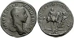 Что касается самого Александра, он официально назвал себя победителем на выпущенных им монетах. Празднование его триумфа отмечено на монете 233 года. Ещё раньше, в 231 году, на монетах появляются легенды VICTORIA AVGVSTI (рус. Победа Августа), хотя нельзя сказать определённо, имеет ли эта легенда какое-либо отношение к войне[79]. Наиболее определённой из всех монет является монета 233 года, на которой император, венчаемый Победой, изображён между двух рек. Эти реки — Тигр и Евфрат, и, хотя фигуры гротескны и вырезаны грубо, смысл их вполне понятен. Маловероятно, чтобы такой простоватый император стал открыто утверждать, что он одержал славную победу, если бы на самом деле всё было наоборот[78].