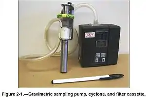 Стандарты по охране труда промышленно-развитых стран во многих случаях ограничивают концентрацию нерастворимой пыли в воздухе промышленных предприятий не для всех частиц, а только для маленьких (респирабельная фракция), которые при вдыхании могут проникнуть глубоко в лёгкие и оседать в альвеолах, нанося максимальный вред здоровью. Для замера респирабельной концентрации пыли могут использоваться предфильтры, отделяющие крупные частицы, например — маленькие циклоны диаметром ~10 мм. Измерения показали, что пульсации расхода воздуха[14] (при использовании поршневых пробоотборных насосов) могут влиять на эффективность измерений[15].