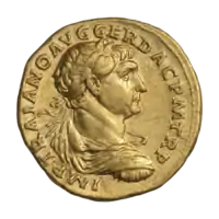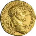 Ауреус Траян ок. 108-110 гг. (аверс). Бюст Траяна в панцире и плаще
