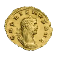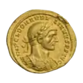 Галлиен (253—268). Ауреус. Рим. Аверс. Бюст Галлиена в панцире, вправо; на голове лавровый венок.