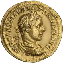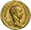 Ауреус. Элагабал (аверс). Бюст Элагабала в плаще
