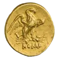Ауреус. Проб. (реверс). Надпись MARS VICTOR. Марс идет вправо.