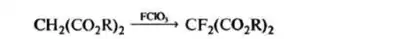 FClO3 также действует, как мягкий фторирующий агент для соединений, включающих реакционно способную метиленовую группу, например: