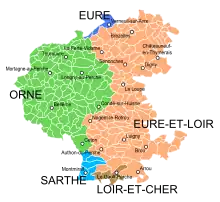 Сегодня почти большинство земель бывшей провинции принадлежат департаментам Орн и Эр и Луар, небольшие части отошли также к департаментам Эр, Сарта и Луар и Шер.