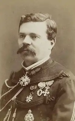 В 1857 году произведен в лейтенанты, в 1860 году — капитан, в 1874 году — майор кавалерии, в 1879 году получил чин подполковника. С 1887 года — бригадный генерал.