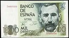| Банкноты | 1000, 2000, 5000, 10 000 песет | ||||