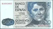500 песет | Синий | Росалия де Кастро | Дом-музей Розалии Кастро | |