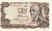 100 песет | Коричневый | Мануэль де Фалья | Сад в Альгамбре | |