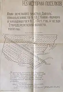 Заложенный посёлок Графская размещался на левом берегу Чёрной речки и относился к Осинорощинской волости. Граф Александр Владимирович Стенбок-Фермор, которому принадлежали земли по правому берегу Чёрной речки, также решает продать часть земель для устройства на них дачного посёлка. К продаже был подготовлен 91 участок площадью по 1 десятине. За время своего существования посёлок в разное время имел разные (по документам) названия: Дыбунок, Дыбун, Дыбуны, Дибуны.