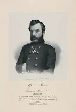 | Награды и премии | Орден Святой Анны 3-й ст. (1855), Орден Святого Владимира 4-й ст. (1855), Орден Святого Георгия 4-й ст. (1855), Орден Святого Станислава 2-й ст. (1857), Орден Святой Анны 2-й ст. (1865), Орден Святого Владимира 3-й ст. (1871), Орден Святого Станислава 1-й ст. (1873), Орден Святой Анны 1-й ст. (1878), Орден Святого Владимира 2-й ст. (1881), Орден Белого орла (1885), Орден Святого Александра Невского (1892). |