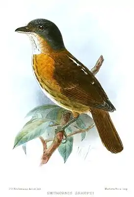 - Рыжегрудый пестробрюхий рогоклюв (Smithornis sharpei)