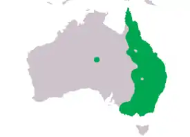 Птица живёт в светлых лесах, кустарнике, на полях и городских окраинах на востоке Австралии. На севере области распространения она — оседлая птица; на юге она мигрирует от высоко расположенных регионов к низине и обратно.
