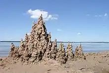 Песчаный замок — это тип песчаной скульптуры, похожий на здание, часто на дворец. Два основных строительных ингредиента, песок и вода, доступны в избытке на песчаном пляже, поэтому большинство игр с песком случаются там или в песочнице. Пляжи, подверженные действию приливов, имеют песок, ограничивающий высоту и структуру из-за формы песчинок. Хорошие песчаные скульптуры получаются из немного грязного, с примесями ила и глины, которые помогают связать вместе песчинки неправильной формы. Вариант песчаного замка — это капельный замок, сделанный смешиванием песка с водой и капанием его из кулака, поднятого сверху. Когда смесь из песка и воды падает на уже существующие песчаные структуры, получается стиль Антони Гауди-и-Корнета. Песчаные замки обычно делаются детьми, просто для забавы, но также существуют конкурсы песчаных скульптур для взрослых, которые касаются больших, сложных конструкций. Примером чрезвычайно сложного песчаного арта служит буддистская мандала.