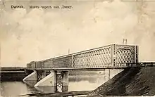 C 1893 г. — Двинск, с 1920 г. — Даугавпилс. Узловая станция с 1861 г.: Риго-Динабургская ж. д.,[8] Динабурго-Витебская ж. д., позднее вошедшие в Риго-Орловскую ж. д. Локомотивное депо Даугавпилс. Локомотиворемонтный завод. Двинск-Товарная станция. Станция в межвоенные годы называлась Даугавпилс II. Разрушена в 1944 г., не восстановлена, упразднена. |