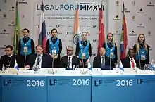 Участие в работе деловой площадки также приняли представители Комиссии Организации Объединенных Наций по праву международной торговли (ЮНИСТРАЛ), Европейского банка реконструкции и развития, Контртеррористического управления ООН, Международной ассоциации социального обеспечения, Организации по безопасности и сотрудничеству в Европе (ОБСЕ), Международного агентства по атомной энергии (МАГАТЭ). На мероприятиях Форума выступили более 520 спикеров, в том числе выдающиеся профессионалы, легендарные ученые, уникальные эксперты в различных областях права.