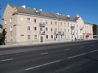 Большинство расположенных вдоль улицы строений — это промышленные, торговые и офисные здания. Несколько многоэтажных жилых домов расположены в окрестностях на пересечении с улицей Маяка. В микрорайоне Вяо напротив жилых домов возле шоссе работает известняковый карьер.