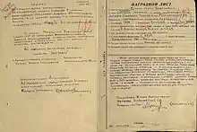 - Орден Отечественной войны II степени[2](6.4.1985) № 4887725