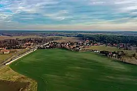 Соседние населённые пункты: на северо-востоке — деревня Нове-Козло (входит в городские границы Ниски), на юго-востоке — деревня Вугельц (в границах города Ниски), на юго-западе — деревня Горшов, на западе — административный центр коммуны Мюка и на северо-западе — деревня Нойдорф коммуны Креба-Нойдорф[2].