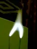 Если на стеклянную плитку или на скамеечку со стеклянными ножками будут положены два или три древесных угля, способные для произведения светоносных явлений посредством гальвани-вольтовской жидкости, и если потом металлическими изолированными направителями (directores), сообщёнными с обоими полюсами огромной баттереи, приближать оные один к другому на расстояние от одной до трёх линий, то является между ними весьма яркий белого цвета свет или пламя, от которого оные угли скорее или медленнее загораются и от которого тёмный покой довольно ясно освещён быть может.