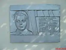 - имя героини увековечено и в названии переулка, который берёт начало от улицы Троицкой и заканчивается у Баклановского проспекта; на доме № 30 висит металлическая мемориальная доска[7].