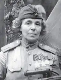 К началу Великой Отечественной войны ей было уже 48 лет и она не подлежала призыву. Однако она добровольно вступила в ряды 4-й дивизии народного ополчения Ленинграда, затем служила в медсанбате.
