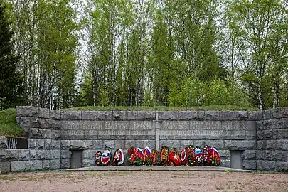 В 1974 году по проекту выборгского архитектора Александра Михайловича Швера на братской могиле был построен памятник, на мемориальных плитах которого были увековечены известные на момент строительства фамилии 4119 погребенных советских воинов. Значительный объем строительных работ был выполнен на общественных началах Выборгскими предприятиями и воинами Выборгского гарнизона.