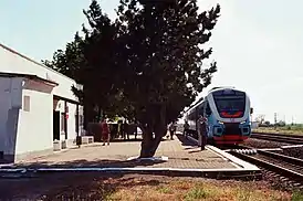 ![]() РА3 ЮППК на станции Петрово, пропускает другой местный поезд (2021) | |