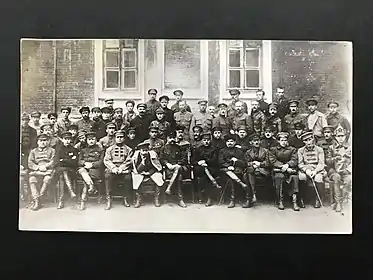 Нижний ряд (слева направо): Д. П. Оськин, А. И. Корк, Н. Н. Петин, А. И. Егоров, М. В. Фрунзе, С. С. Каменев, К. Е. Ворошилов, П. П. Лебедев, А. А. Иорданский, И. Э. Якир, Д. А. Петровский, М. Н. Тухачевский