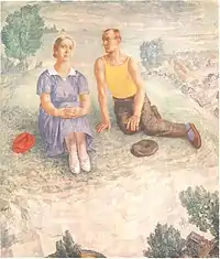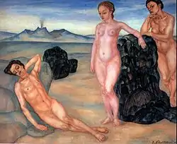 В 1911 году Петров-Водкин создаёт ещё одну этапную картину — «Мальчики» («Играющие мальчики»). В статье «Путь художника» он признавался: «Я не боюсь сознаться в любых моих промахах и любых заимствованиях. <…> Возможно, что Матисс был моим вдохновителем при работе над „Играющими мальчиками“»[38], имея ввиду очевидную связь своего полотна с матиссовским панно «Танец» (1910). При этом символическое содержание «Мальчиков» было сугубо индивидуальным и отражало восприятие художником конкретного исторического момента: