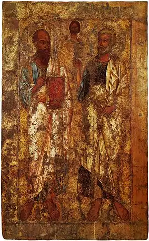 | Апостолы Пётр и Павел, одна из древнейших русских икон, вторая половина XI века | |