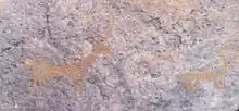Среди преобладающих рисунков различных животных встречаются и изображения коз, указывающие на то, что в скотоводческой жизни местного населения козы занимали одно из основных мест. На одной из скал художник изобразил находящегося в напряжении леопарда. Интересными являются и реалистичные изображения оленей.