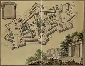 - Нет полной ясности, приспосабливались ли для размещения артиллерии фасы между равелинами и полуконтргардами, или это осталось лишь в проекте.