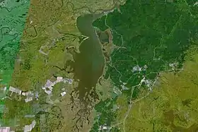 Петропавловское озеро в малую воду, дно обнажилось примерно на полкилометра от нормального уреза