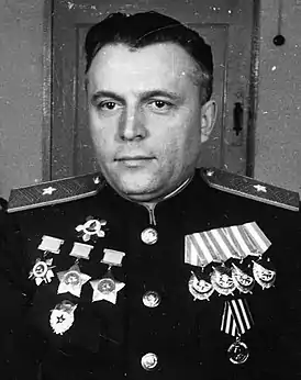 - пять орденов Красного Знамени (04.01.1942[5], 23.08.1944[6], 03.11.1944[4], 06.06.1945[7], 1952[4])