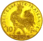 - монеты с гуртовой надписью «Свобода, Равенство и Братство» (Liberté Egalité et Fraternité), выпускавшиеся с 1906 по 1914 год.