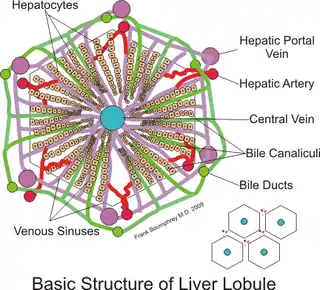 Паренхима — дольчатая. Печёночная долька является структурно-функциональной единицей печени. Основными структурными компонентами печёночной дольки являются:
