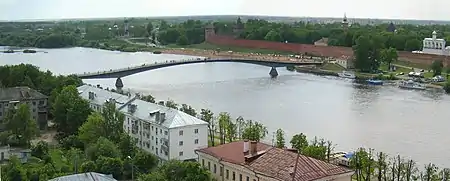 Первый новгородский мост — Великий мост, стоявший на этом же месте, упоминается в летописи в 1133 году[4]. Мост неоднократно перестраивался и эксплуатировался до 1944 года[5], когда был взорван отступавшими фашистскими войсками.